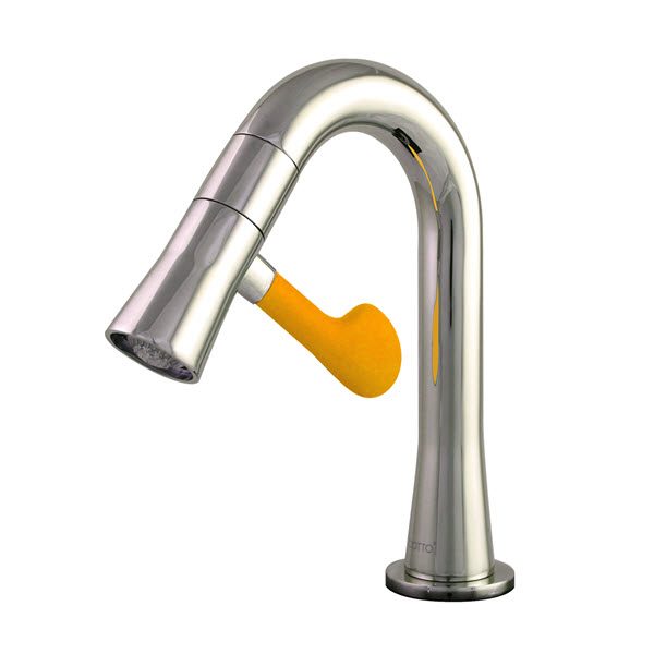 CT1301C43YL ก๊อกเดี่ยวอ่างล้างหน้าพร้อมไฟ LED ก้านปัดนุ่มสีเหลือง (ตัวก๊อกสีโครม) รุ่น ซอฟ แพทเดิ้ล