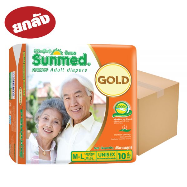 ผ้าอ้อมผู้ใหญ่ซันเมดโกลด์ ไซส์ M / 1 ห่อ 10 ชิ้น ต่อ ห่อคุณสมบัติสินค้า -ซึมซับได้รวดเร็วด้วยแผ่น ADL -ผิวสัมผัสนุ่มคล้ายผ้า สวมใส่สบาย-ช่วยระบายความร้อน ไม่อับชื้น -ให้การซึมซับมากเป็นพิเศษ -ชิ้นสวมใส่ได้ตลอดคืน-ขนาดรอบเอว 28-46 นิ้ว-ขนาด M-L