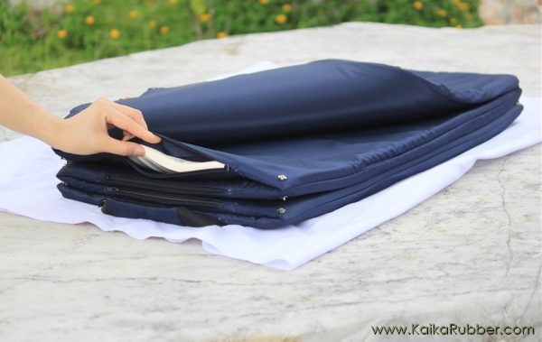 ที่นอนปิกนิกยางพารา รุ่น M – สีกรม ผ้ากันน้ำ กันไรฝุ่น KaiKa (5 พับ หนา 1.5 ซม.) เป็นที่นอนที่ผลิตจากยางพาราแท้ 100% มีความยืดหยุ่นสูง ทนทาน สามารถใช้งานได้นานกว่า 5 ปี จำหน่ายพร้อมปลอกที่สามารถถอดซักทำความสะอาดได้ง่าย ใช้เป็น ที่นอนปิคนิค พกพาสะดวก ด้วยน้ำหนักเพียง 3 กิโลกรัม