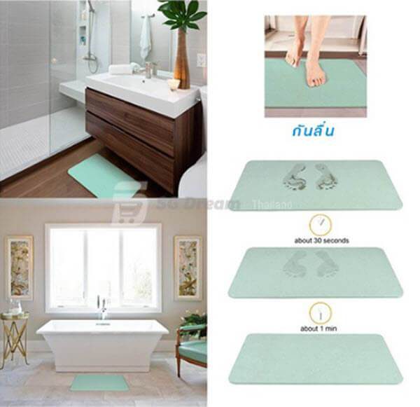 ผลิตจากใยหินธรรมชาติ ซึมซับน้ำได้เร็วมาก ป้องกันการลื่นล้ม แอนตี้แบคทีเรีย ทำให้บ้านสะอาดอยู่เสมอ