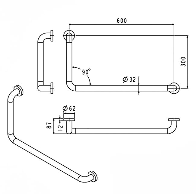 ราวทรงตัว ตัวแอล GRAB BAR C-TS791 32X300X600 มม. 90 องศา