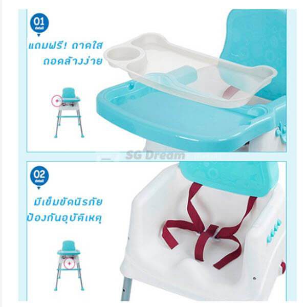 เก้าอี้หัดกินข้าว ถาดอาหารสามารถถอดล้างได้ สะดวก