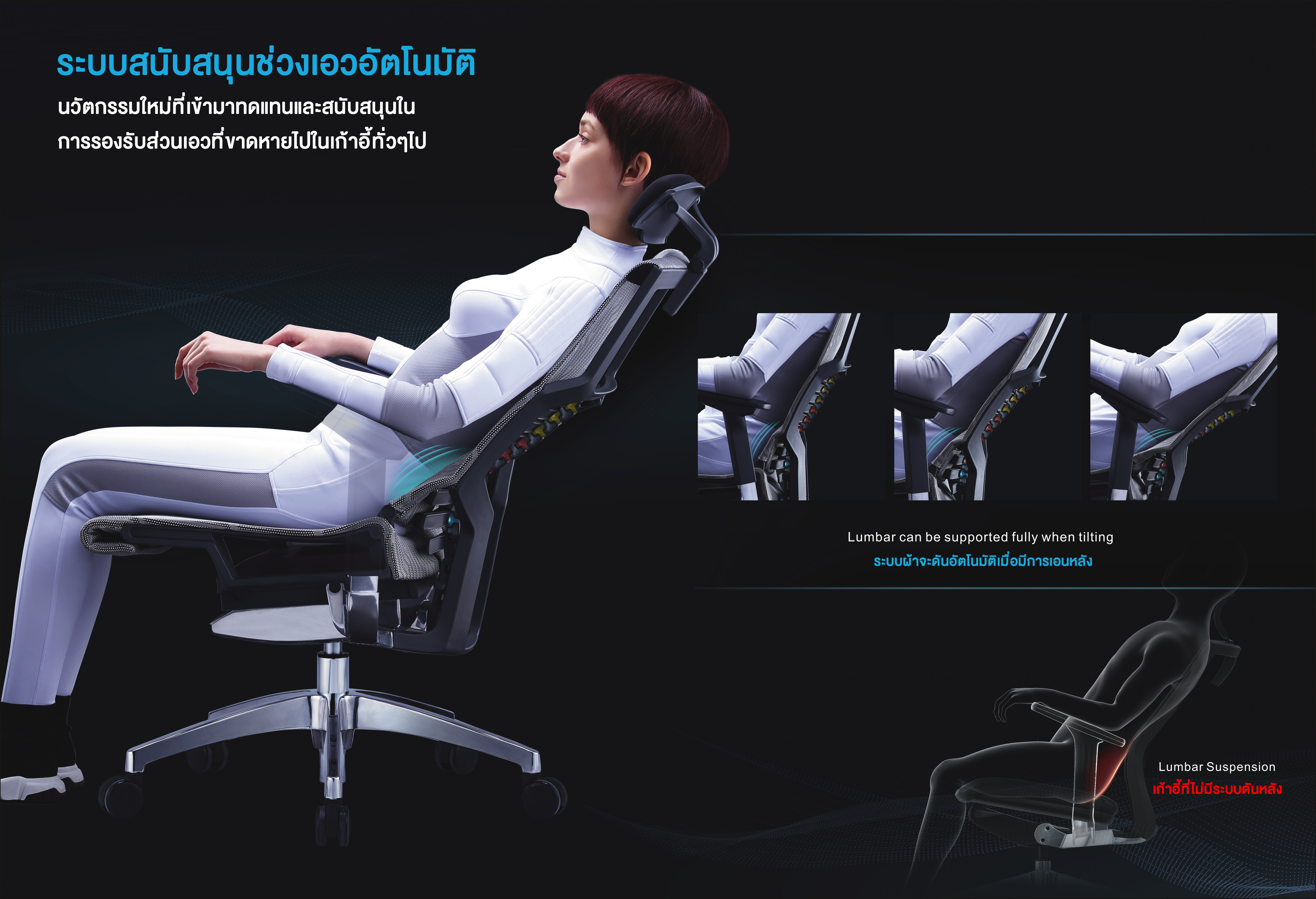 เป็นการผสมผสานกันอย่างลงตัวของ การออกแบบของเก้าอี้ Ergonomices คู่กับเทคโนโลยี ไบโอนิค( Bionic Spine )