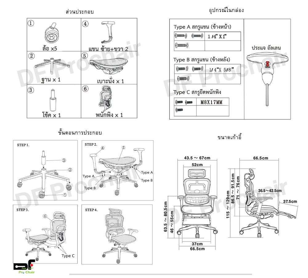 - พนักพิงปรับสูงต่ำได้ 4 ระดับ เพื่อรองรับสรีระในการนั่งที่ต่างความสูงของผู้ใช้งาน