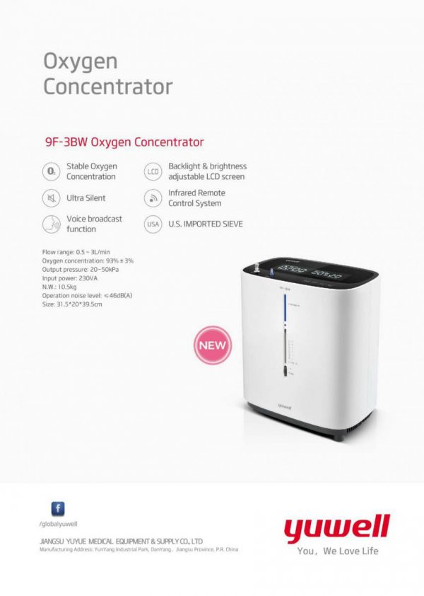 เครื่องผลิตออกซิเจน 3 ลิตร YUWELL รุ่น 9F-3BW