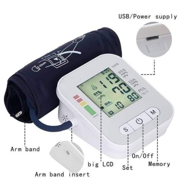รุ่นใหม่จอใหญ่ มีเสียง เครื่องวัดความดัน บริเวณต้นแขน จอ LCD แสดงผลด้วยระบบดิจิตอล ที่วัดความดัน อัตโนมัติ