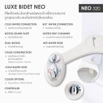 Luxe Bidet Neo 320 (hot water) เป็นหัวชำระแบบคู่ ซึ่งเป็นอุปกรณ์ยึดติดที่ไม่ใช้ไฟฟ้า ใช้น้ำเพื่อลดการใช้กระดาษชำระ และเพิ่มสุขอนามัย ประหยัดน้ำกว่า สายชำระ ระบบก่อนๆ และ ให้ความรู้สึกที่นุ่มนวลกว่า ด้วยหัวฉีดแบบ ด้านหน้าและด้านหลัง ให้สุขอนามัยที่ดี