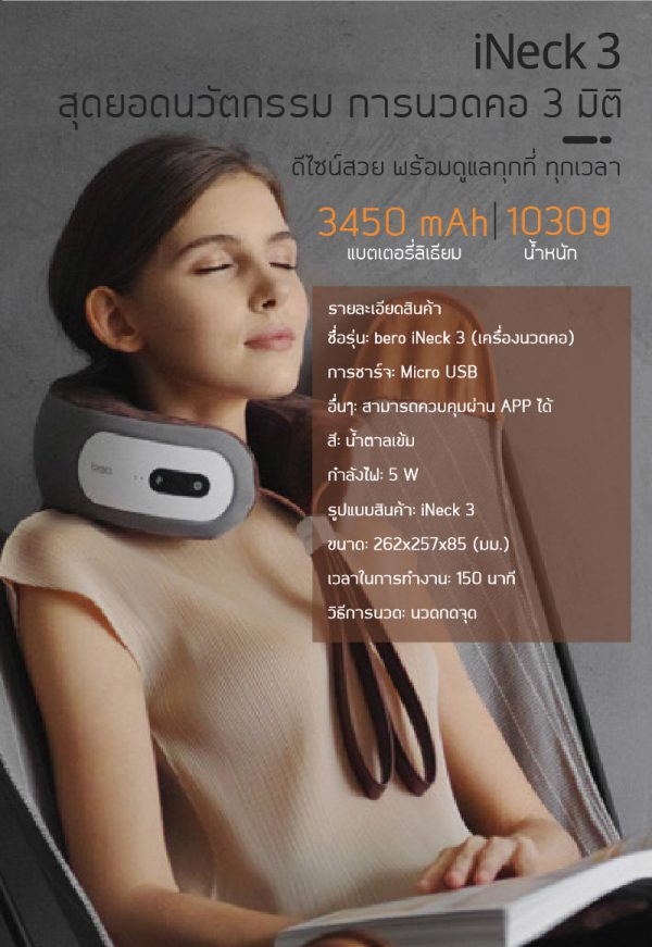 รายละเอียดสินค้า breo เครื่องนวดคอเพื่อสุขภาพแบบพกพา รุ่น iNeck3