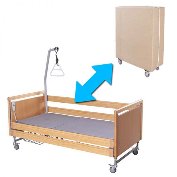 เตียงปรับระดับไฟฟ้า สำหรับผู้สูงอายุ ผู้ป่วย ออกแบบเพื่อให้ใช้งานที่บ้าน โดยดีไซน์โดยใช้วัสดุเนื้อไม้กรุโครงโลหะทำให้ดูสวยงามเข้ากับการใช้งานที่บ้าน