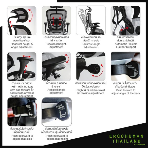 รายละเอียด : เก้าอี้เพื่อสุขภาพ รุ่น ERGOHUMAN