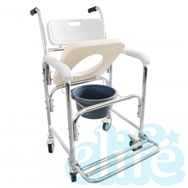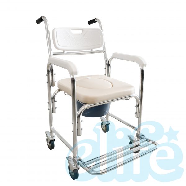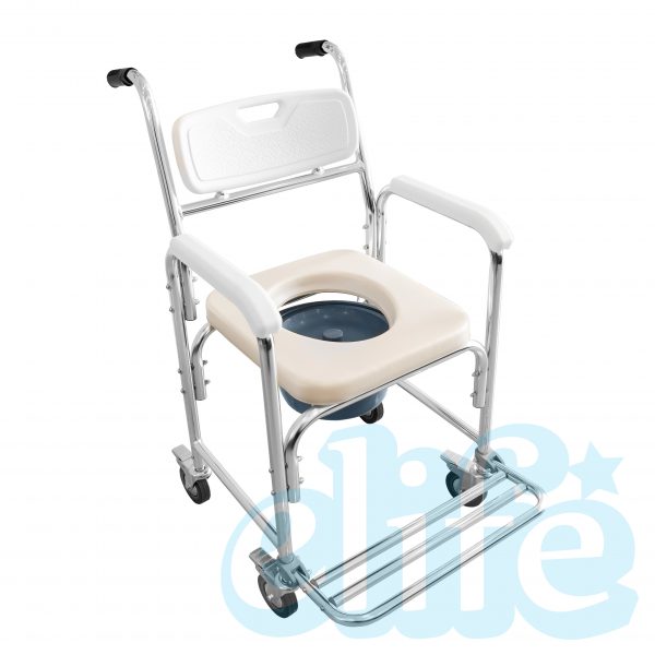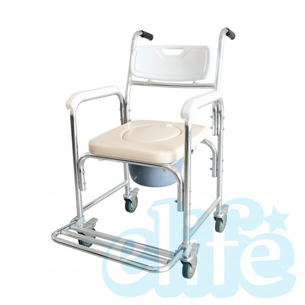 รถเข็นนั่งถ่ายสำหรับ คนชรา โครงรถทำจาก Aluminium นน.เพียง 9Kg ที่นั่งนิ่ม พร้อมล้อ+ห้ามล้อทั้ง 4 ล้อ เบาะนั่งสามารถเปิดออกได้ ข้างใต้เป็นกระโถน สามารถถอดออกมาทำความสะอาดได้ สามารถเข็นรถไปครอบอยู่บนชักโครกได้