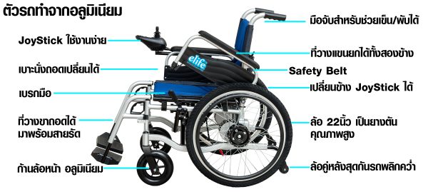 PW-101A Aluminium ควบคุมด้วยด้วย Joystick เคลื่อนที่ด้วยมอเตอร์ มาพร้อมฟังก์ชั่นครบครัน รูปลักษณ์คล้ายรถเข็นทั่วไป มีมือจับที่ล้อจึงสามารถใช้งานได้ 3 ระบบ คือ