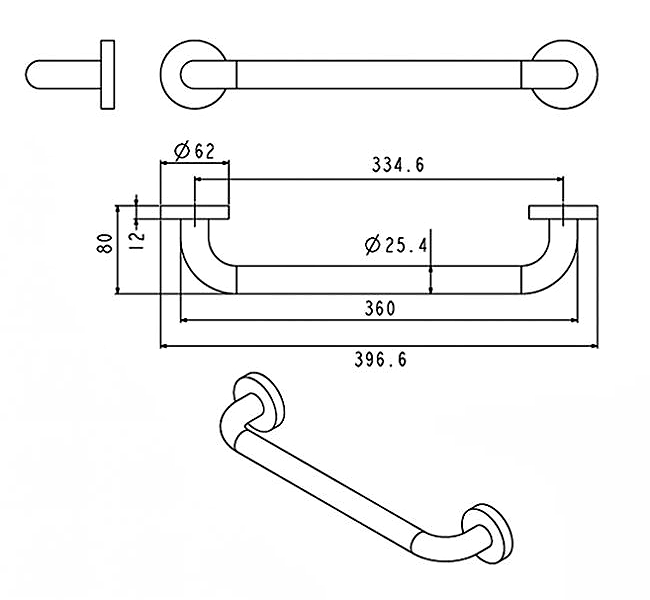 VRH GRAB BAR C-TS790 ขนาด 25×360 มม.